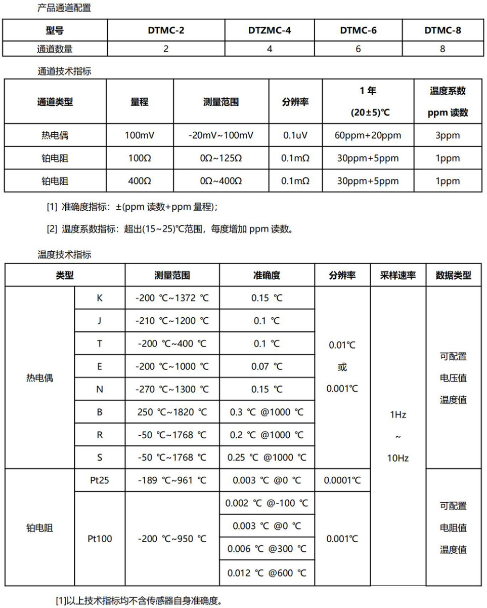 DTMC 六通道精 密測溫儀一款基于模塊化設計的多通道,多功能測溫儀,整個系列分為兩通道、四通道、六通道和八通道四種配置,通道支持自由組合配置,分別可選配鉑電阻測量模塊、熱電偶測量模塊,具有精度高、傳感器覆蓋廣、功能豐富等諸多優點。